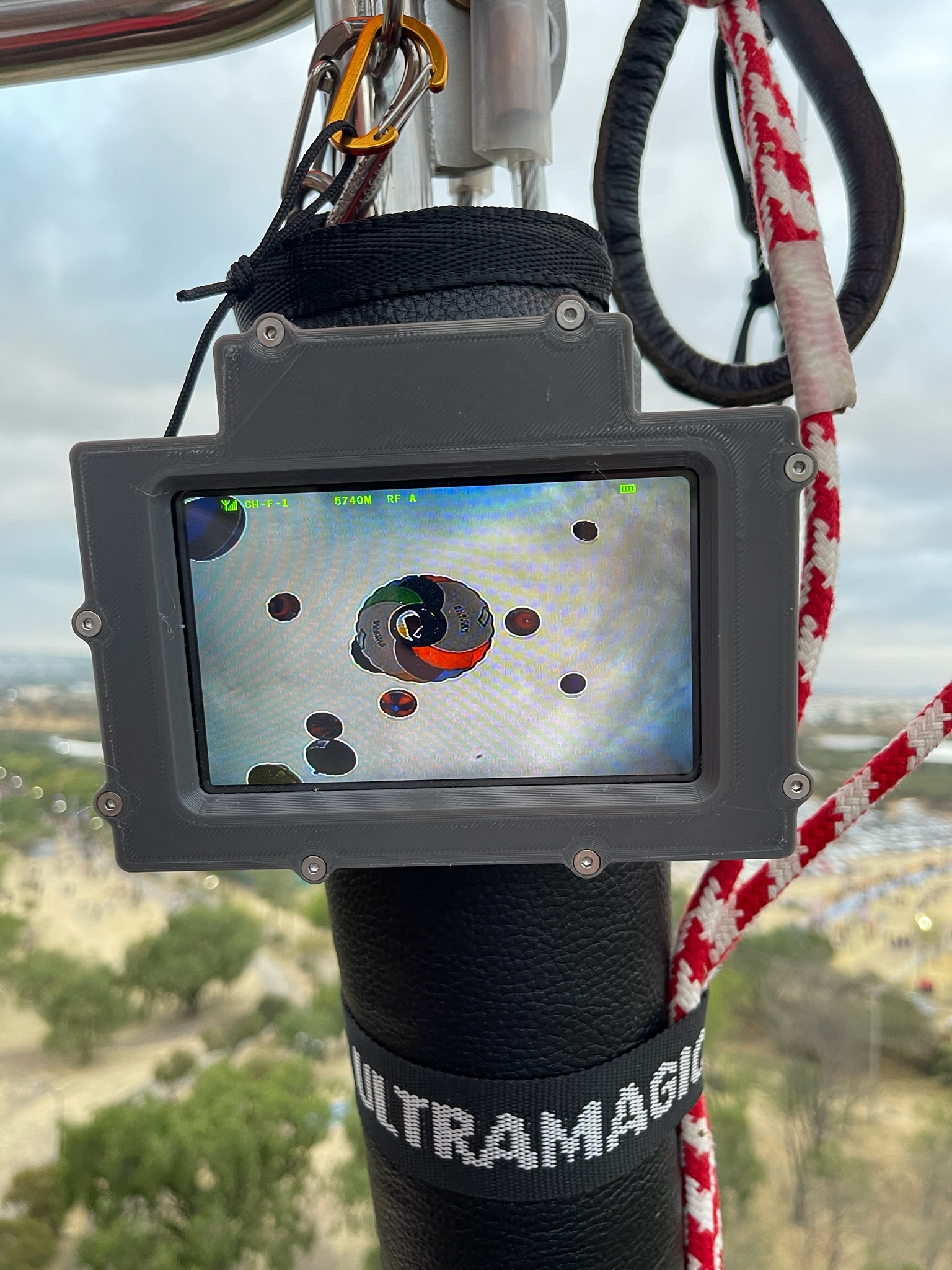 Clear Above is a product specifically designed for hot air balloonists to increase confidence and performance while flying in traffic. It is an upward facing camera that wirelessly transmits a live image down to a monitor in the basket. This allows for an unobstructed view above the balloon to maneuver with greater confidence and speed.